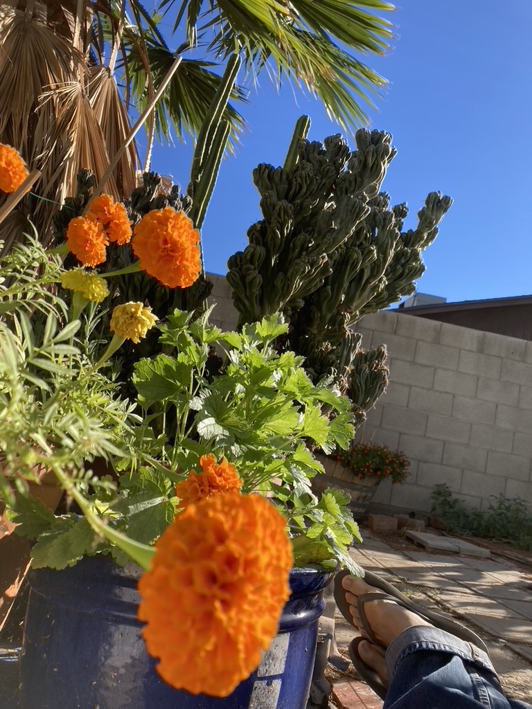 A sunflower looks like a mothership about to launch an armada of landing vehicles. Are they invaders? Colonizers? Explorers? Tourists?